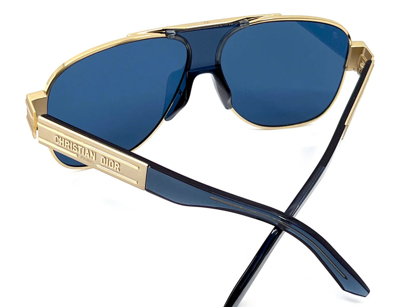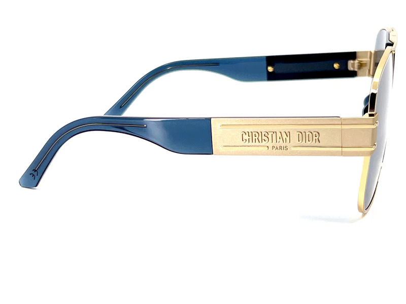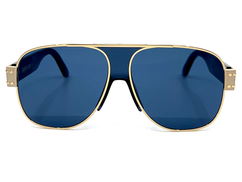 • Σκελετός: Χρυσό μεταλλικό πλαίσιο σε συνδυασμό με μπλε acetate βραχίονες — δημιουργεί εντυπωσιακή αντίθεση και μοντέρνα αίσθηση.